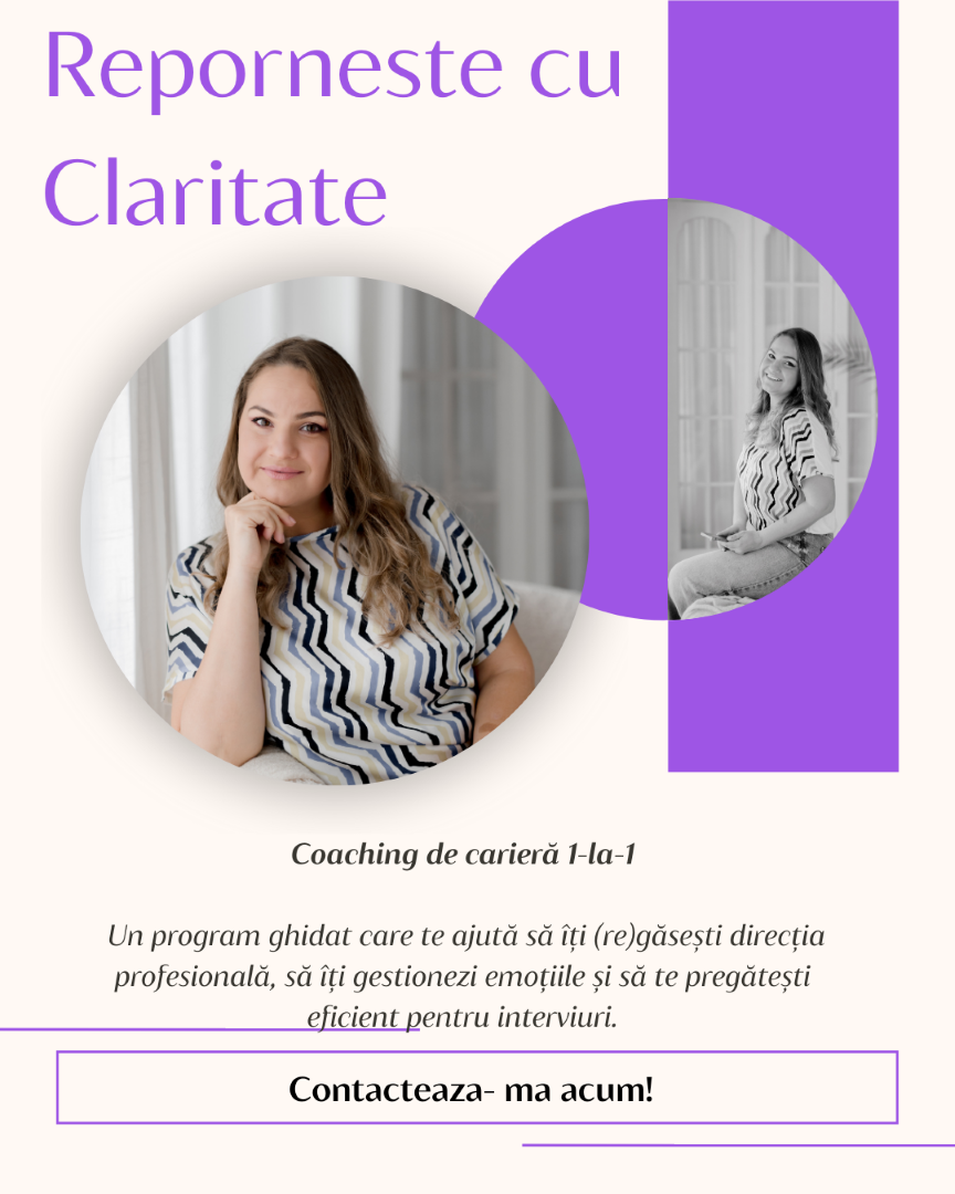 Experiența anterioara de peste 15 ani în domeniul resurselor umane, în companii din diverse industrii, m-a ajutat să înțeleg în profunzime dinamica organizațională, nevoile reale ale oamenilor din mediul profesional și cum pot fi sprijiniți în mod concret în carieră, în gestionarea stresului, a conflictelor sau a tranzițiilor importante.